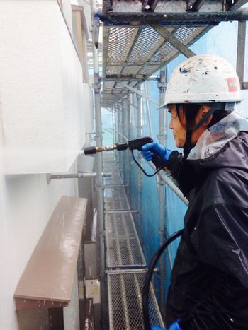 外壁の汚れを丁寧に落とします。