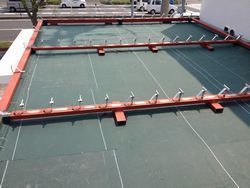 屋根の下地に粘着防水シートを貼り付け、鉄骨で屋根下地を取り付け、