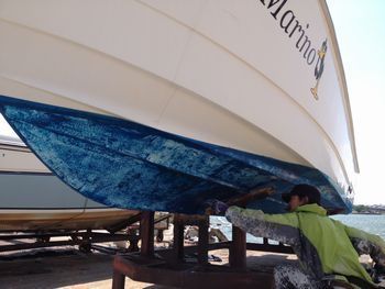 昨日の船底の高圧洗浄後、フジツボは取れましたが、