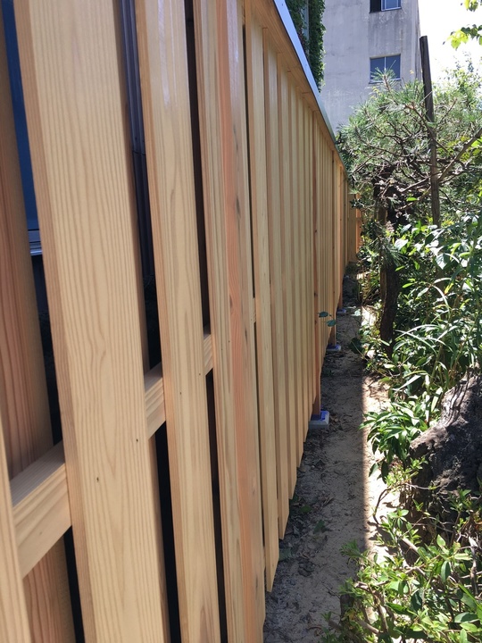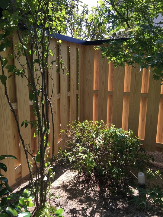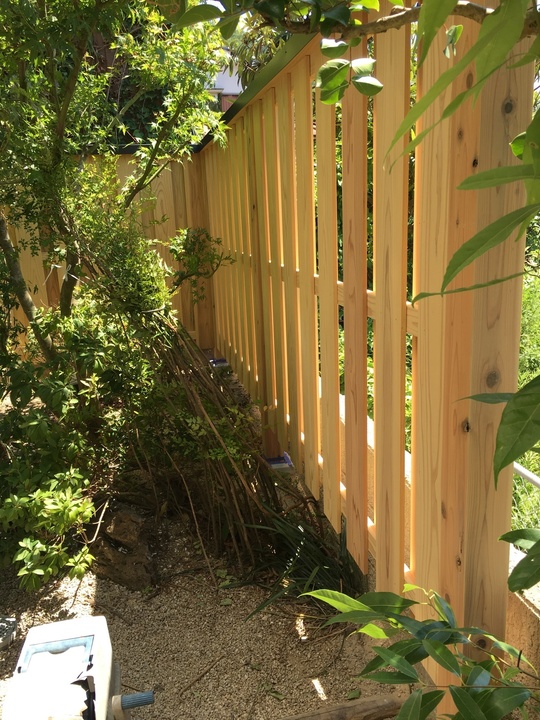 新しくなった木の塀に、植栽の緑が映えて、大変綺麗なお庭になりました。