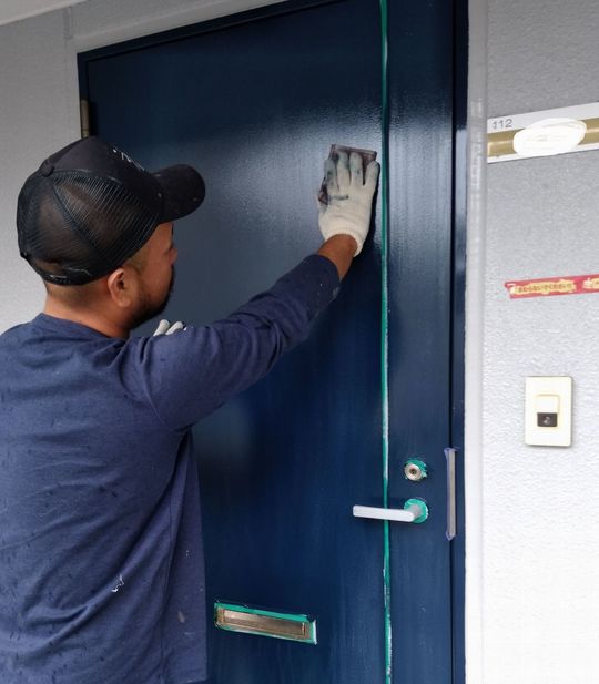 昨年、弊社に集合住宅の外壁改修工事を依頼してくださいましたオーナー様より再びご依頼があり、同じ建物の玄関ドアの塗装工事をすることになりました!