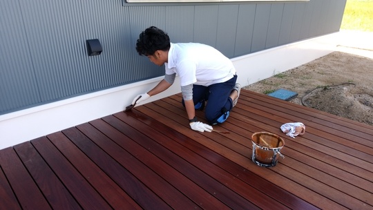 弊社が使用しましたウリンは腐食やシロアリには強いので防腐塗装をする必要はありませんが、紫外線には弱く、対策を施す必要があります。