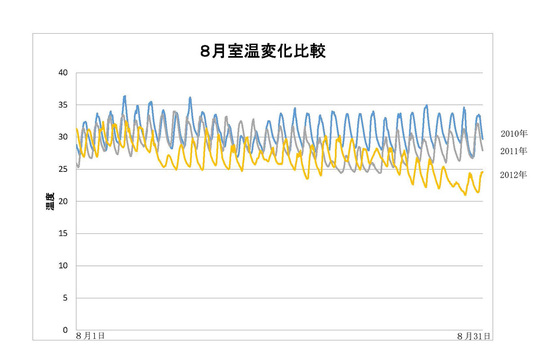 夏季、自社で温度調査を行ったものを分かりやすくグラフにしたところ…